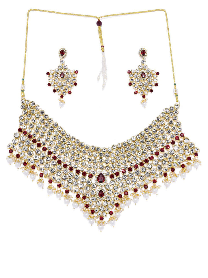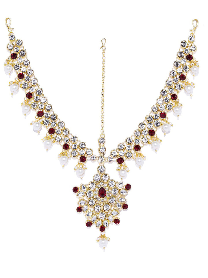 18K Gold Plated & Maroon Cubic Zirconia Studded Traditional Jewellery Set