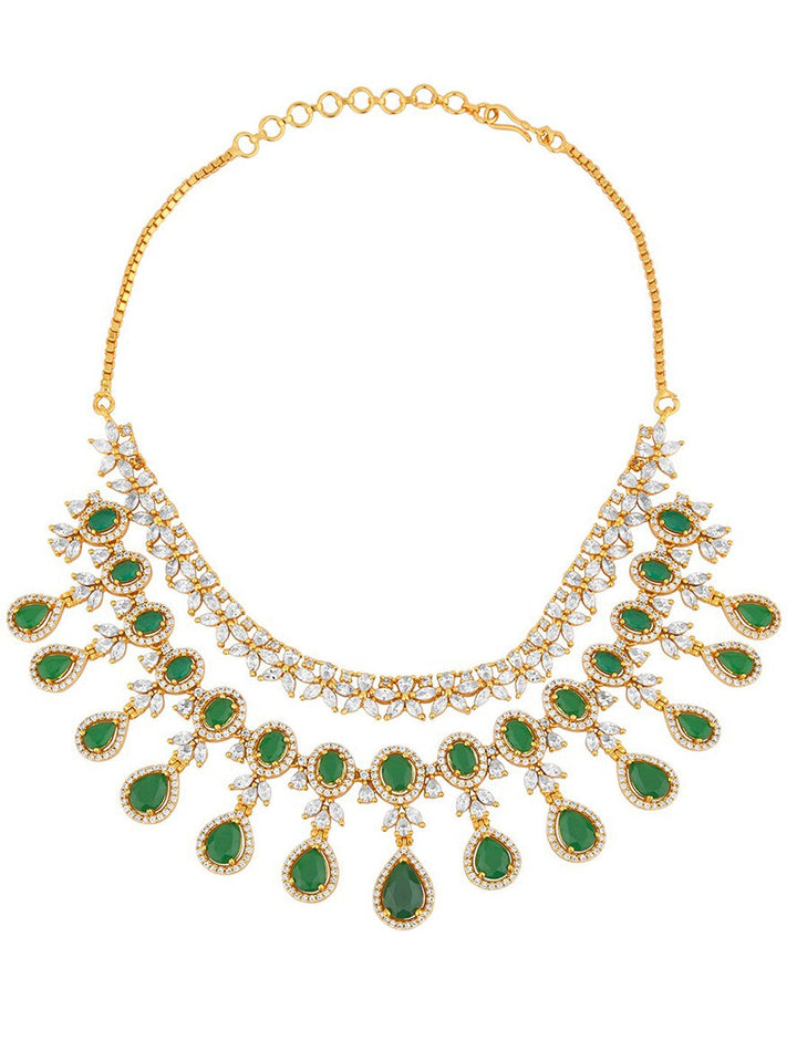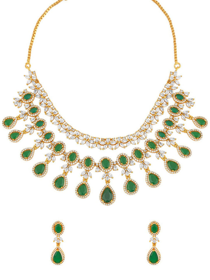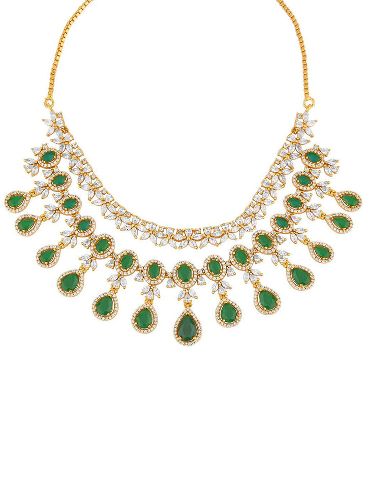 Gold-Plated American Diamond Studded & Stone Beaded Layered Jewellery Set