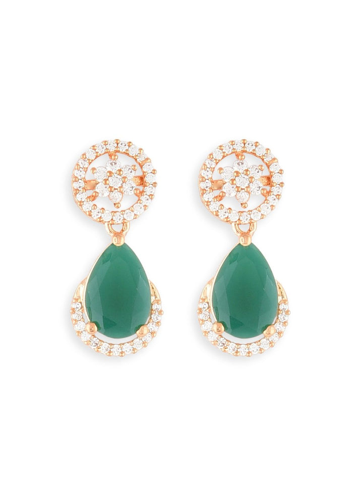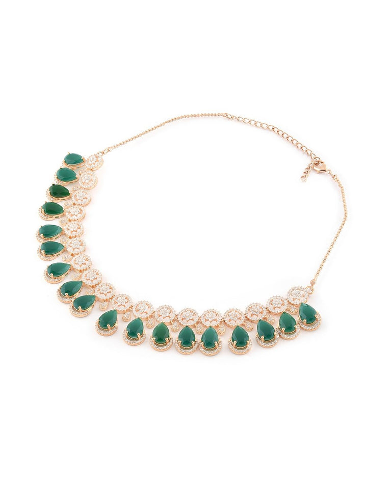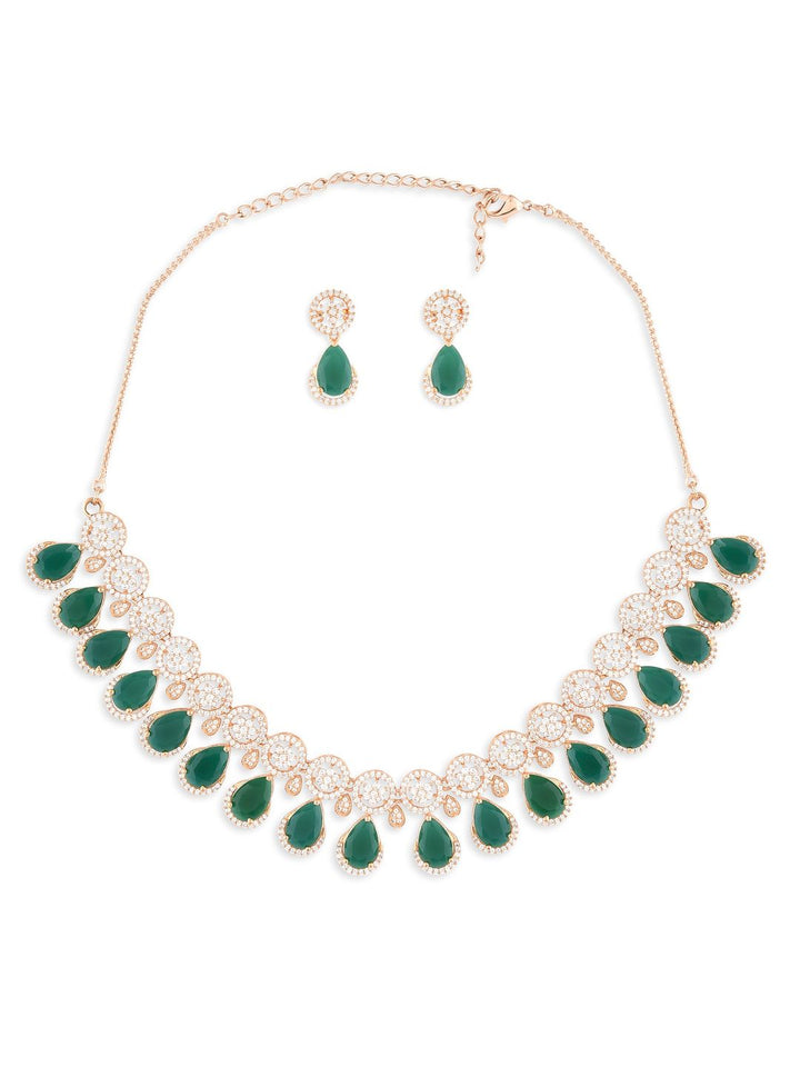 Green TearDrop & Cubic Zirconia Necklace & Earring Set