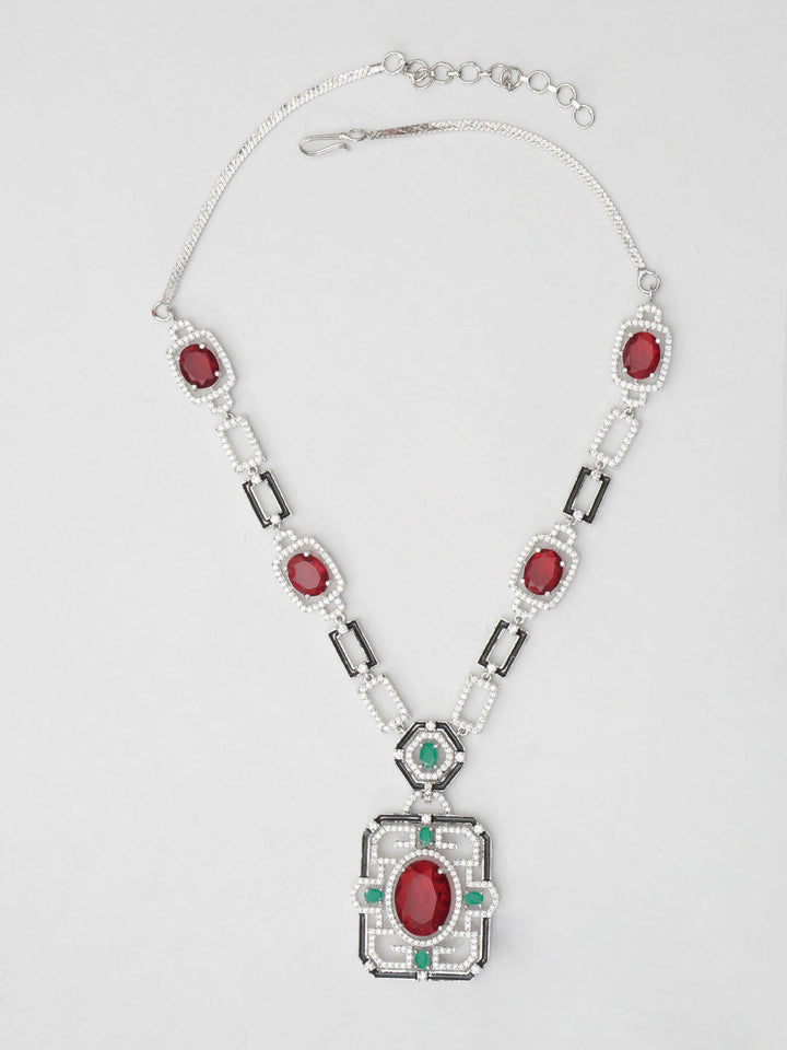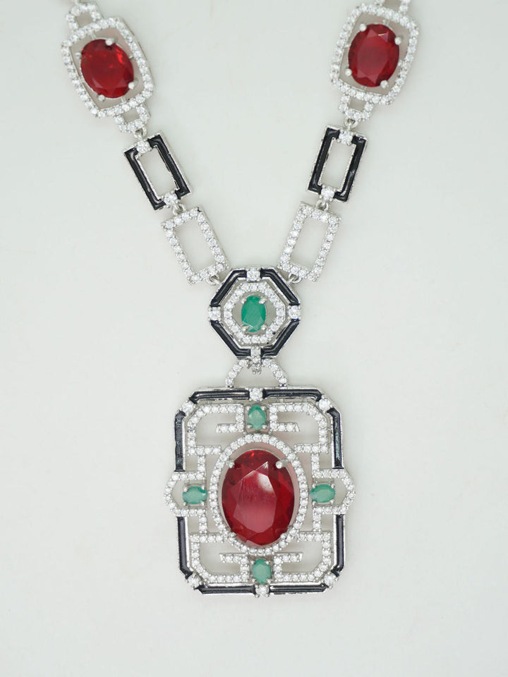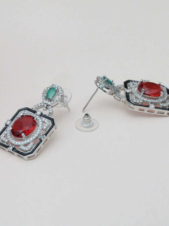 Luxurious Silver-Plated Multi-Color Embellished Jewellery Set