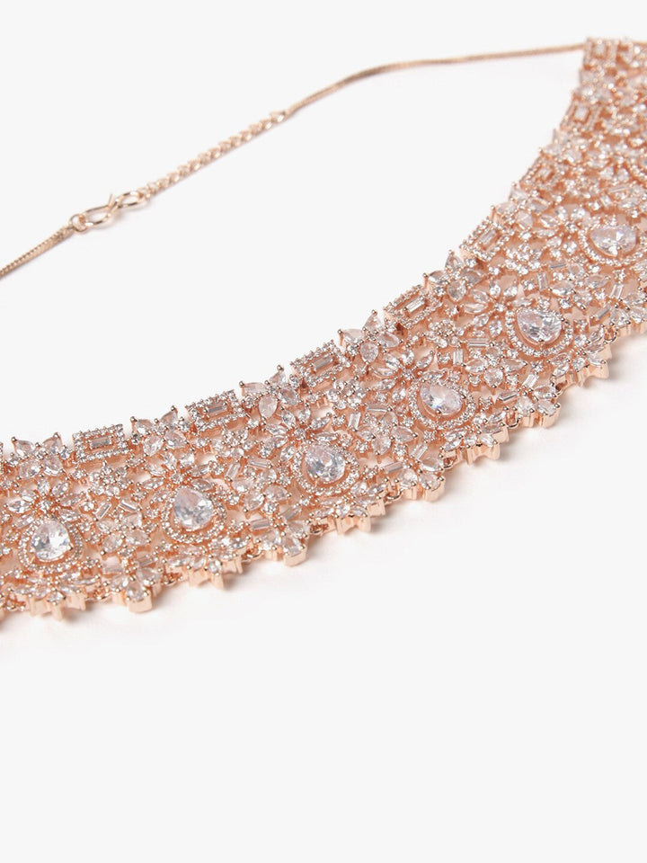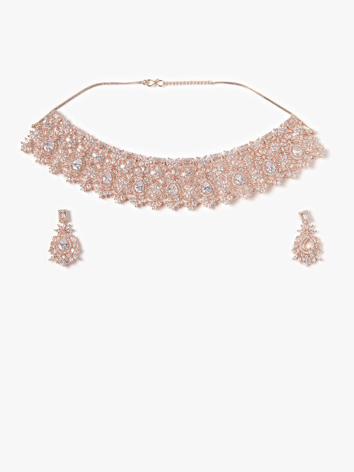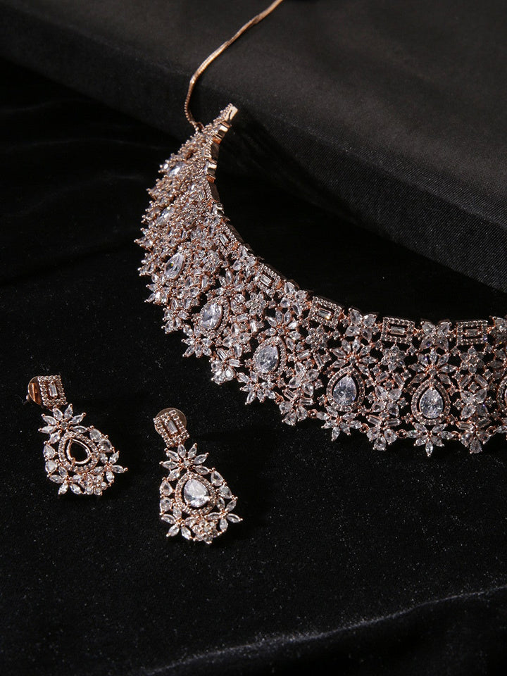 Rose Gold-Plated American Diamond-Studded Jewellery Set