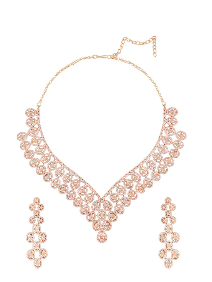Rose Gold-Plated Cubic Zirconia Studded Jewellery Set