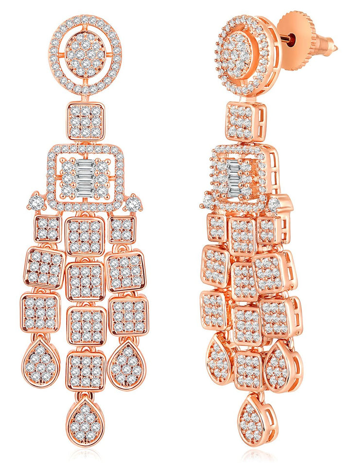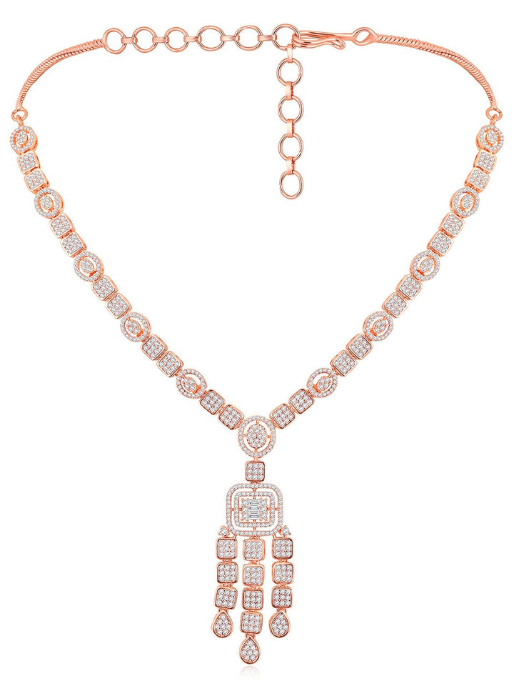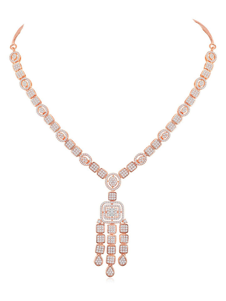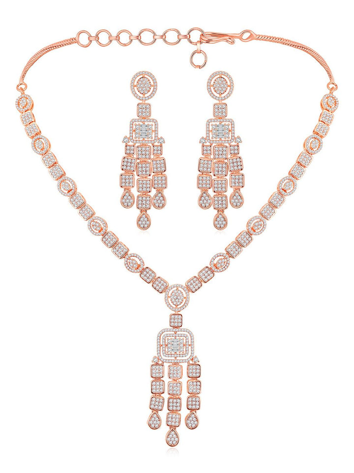 Rose Gold Plated Cz Studded Western Jewellery Set For Women