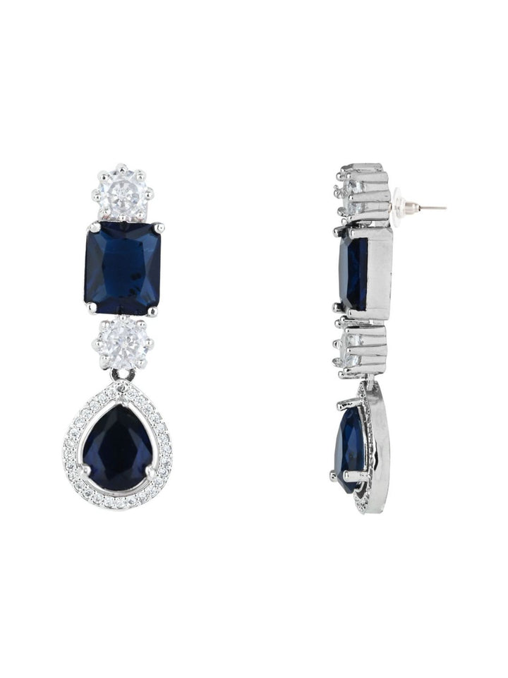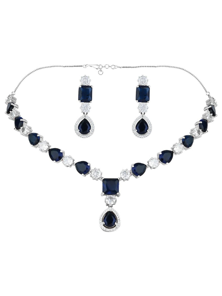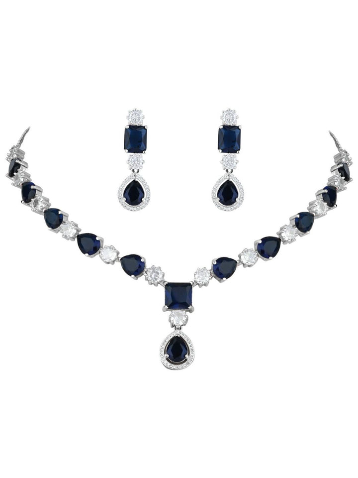 Silver Plated Cubic Zirconia American Diamond Necklace & Earring Jewellery Set Blue