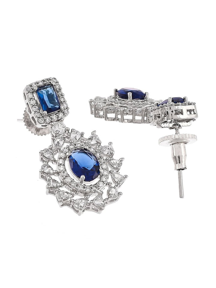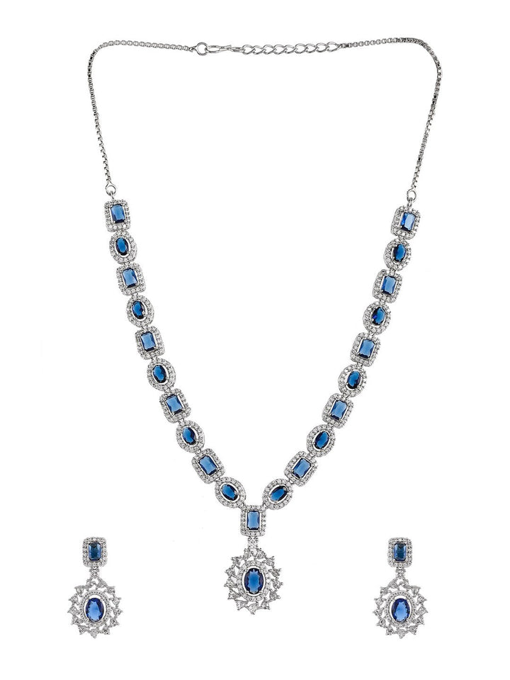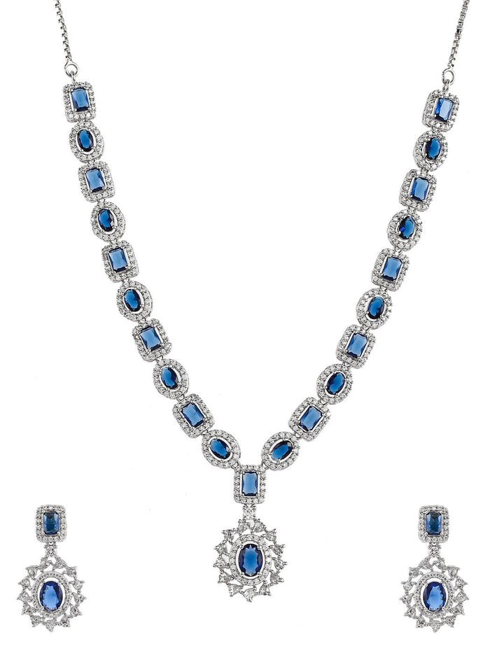 Silver-Plated CZ Blue & White Studded Jewellery Set