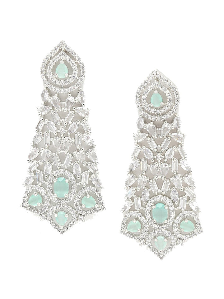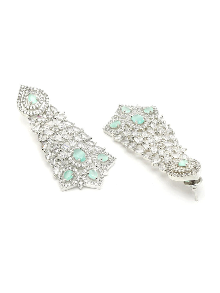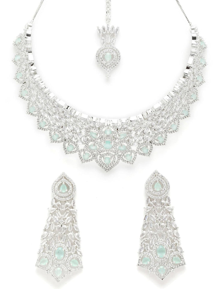 Silver-Plated & Lime Green CZ-Studded Jewellery Set