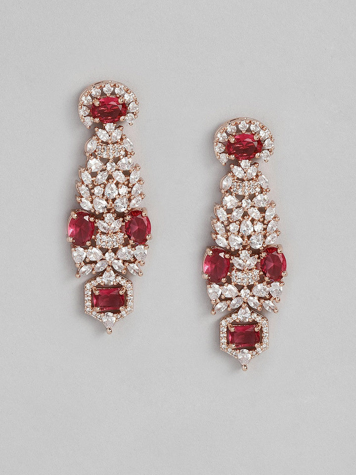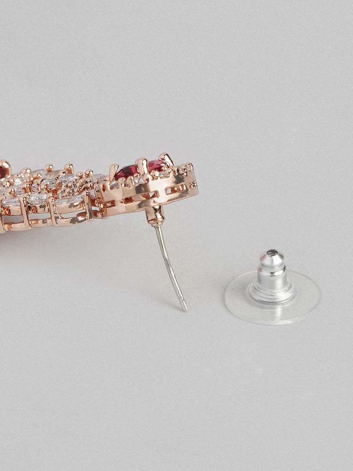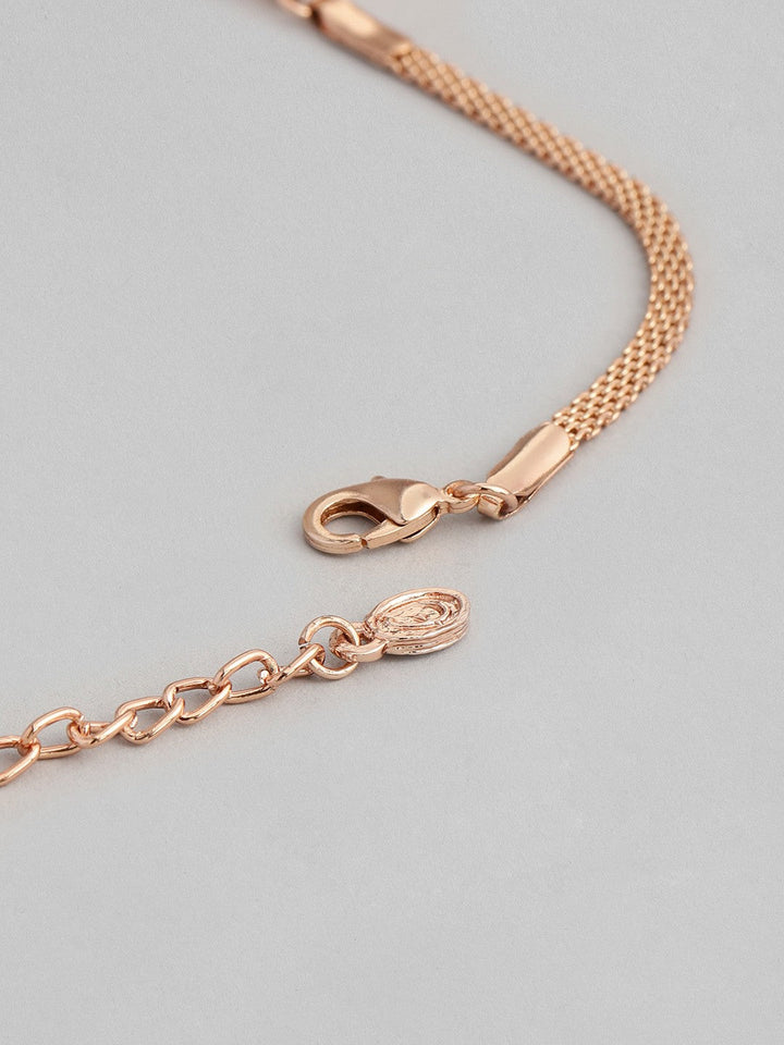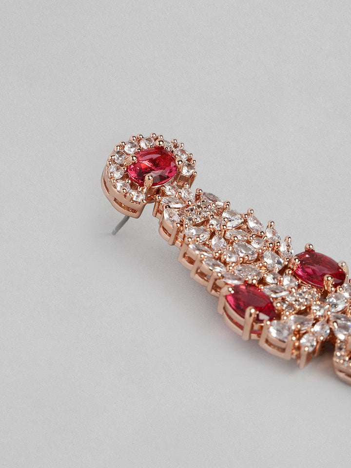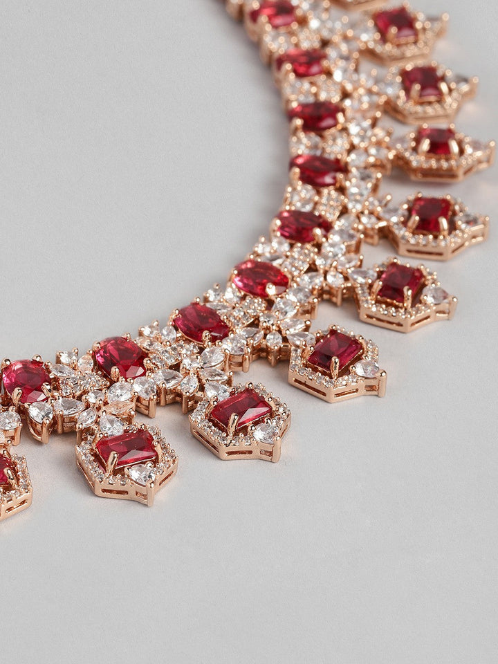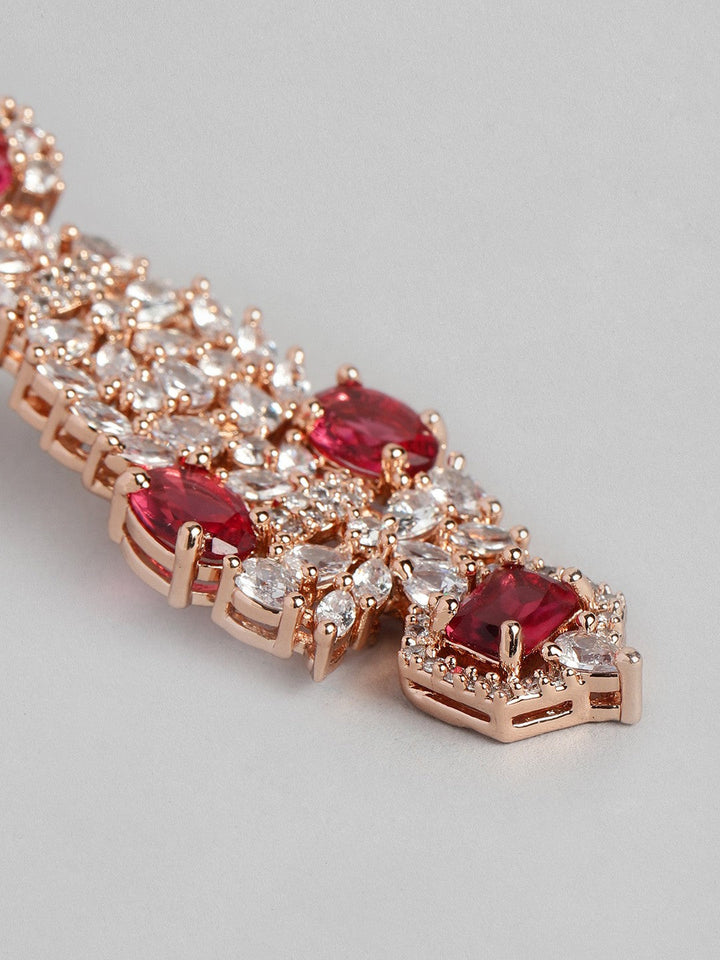 Women Rose Gold-Plated CZ Studded Necklace with Earrings