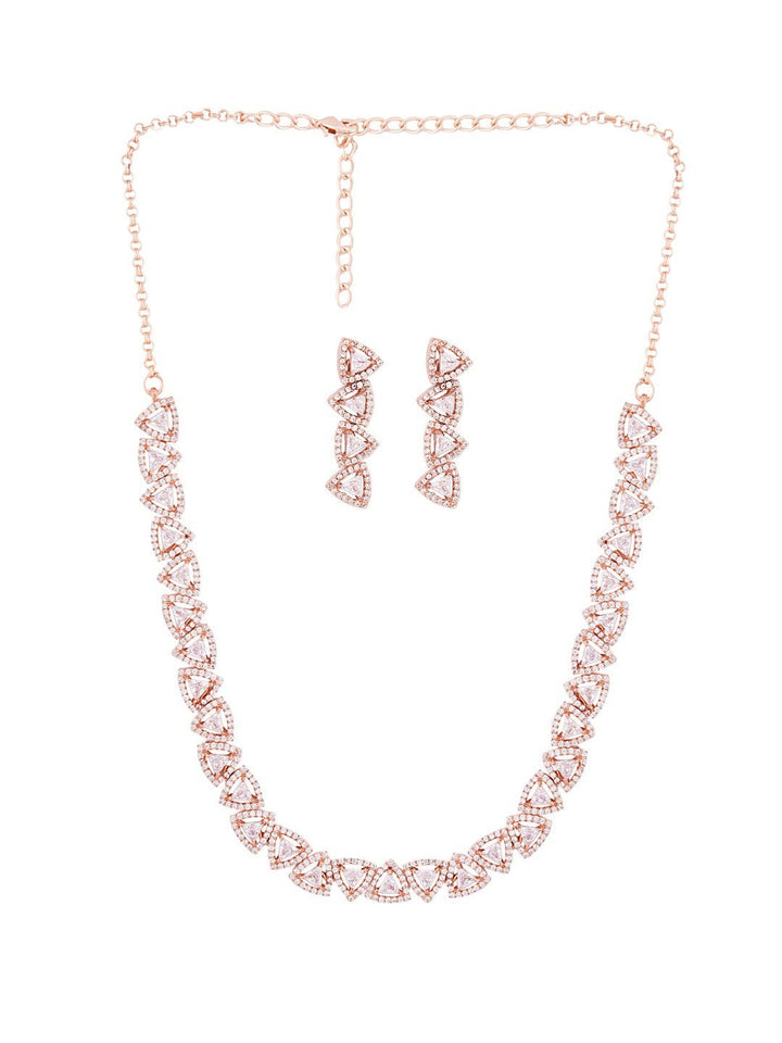 Women Rose Gold-Plated & White CZ Studded Jewellery Set